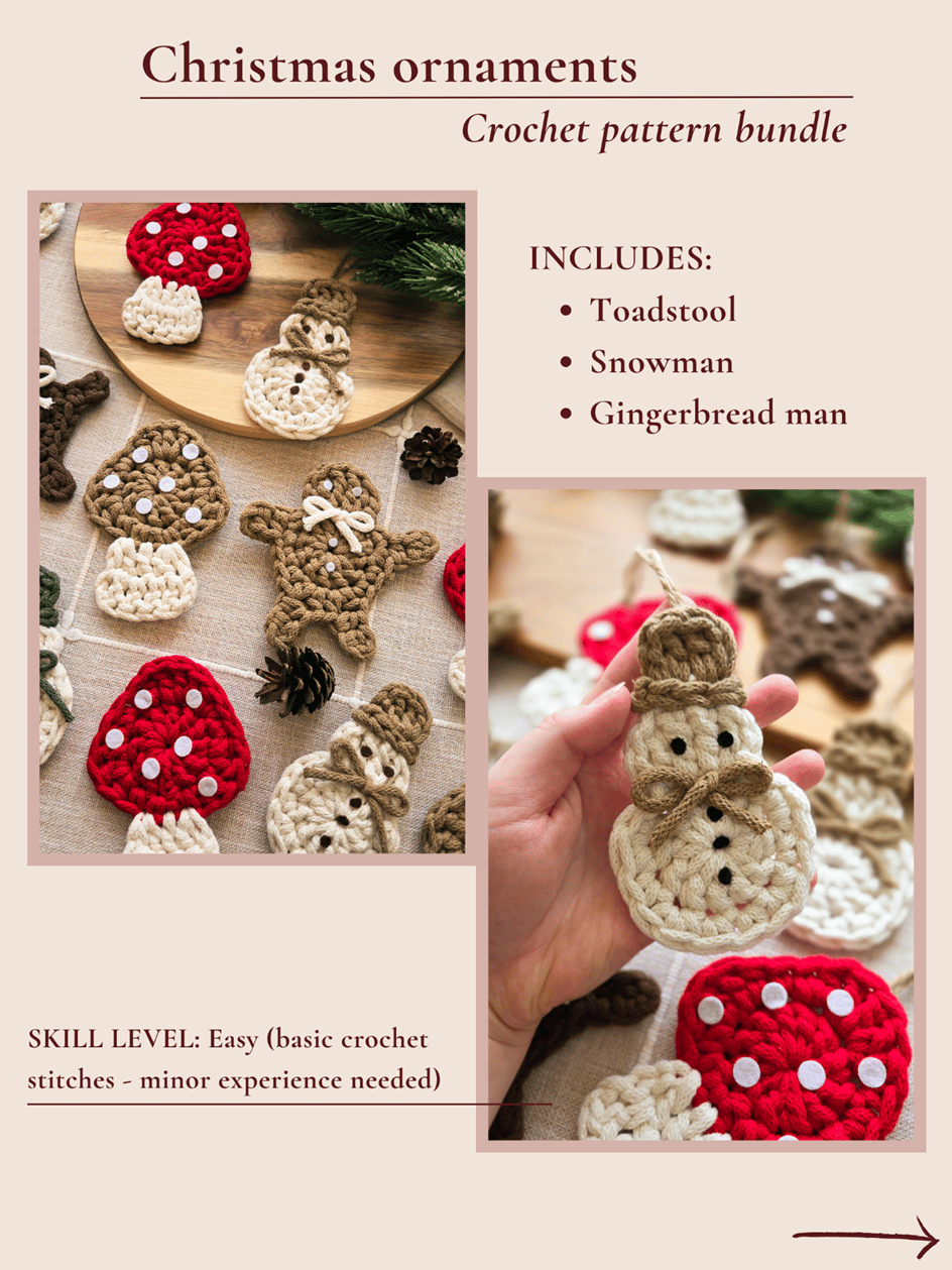 Ready to get crafting for the holidays? Tap the link below to grab the 2025 Christmas Ornament Crochet Pattern Bundle or explore all my discounted patterns one last time! Remember, the 20% off promotion ends tomorrow!